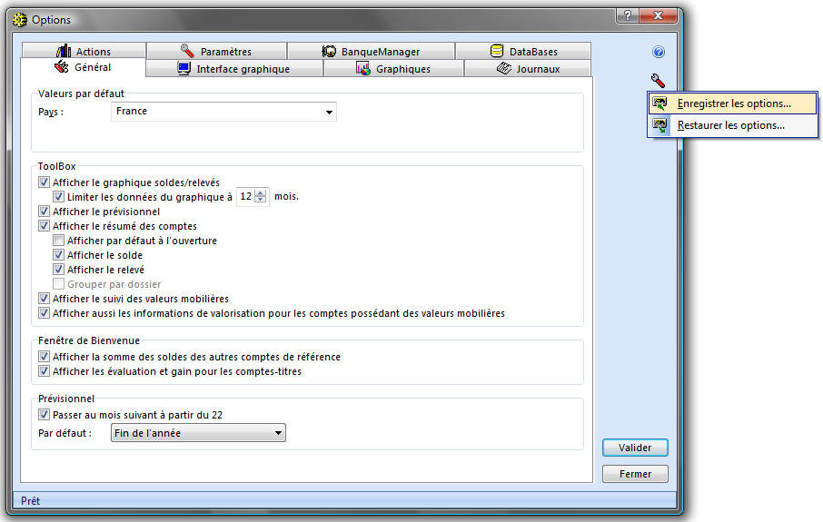 amovible. * Etape 1 : Migrer les options : Dans le menu Outils + Options, choisissez le menu contextuel Outils, puis Enregistrer les options :