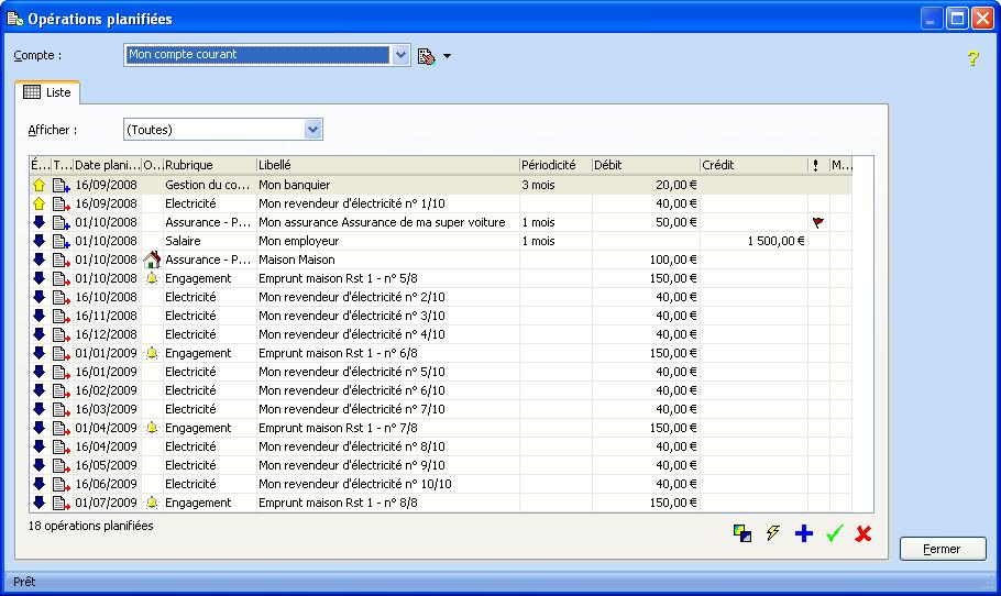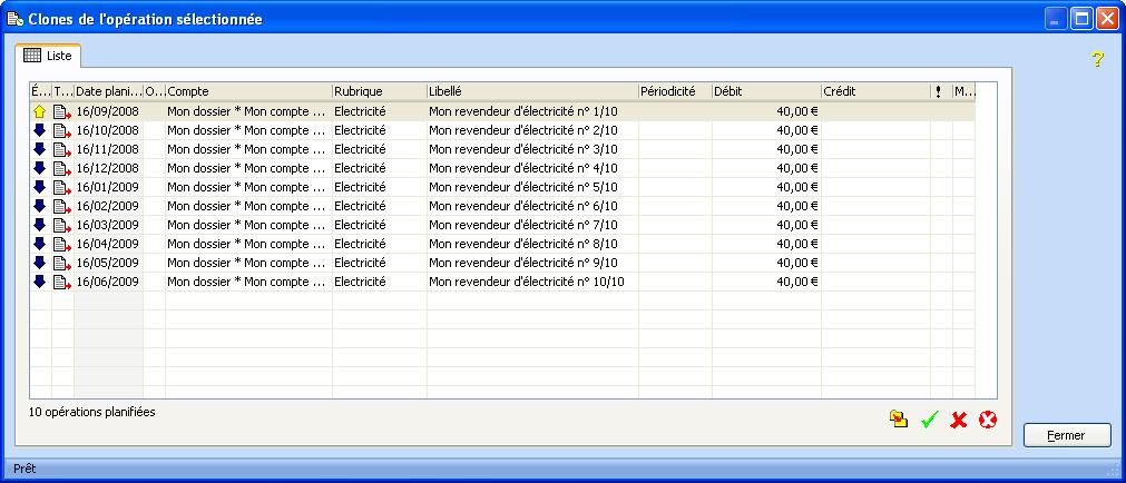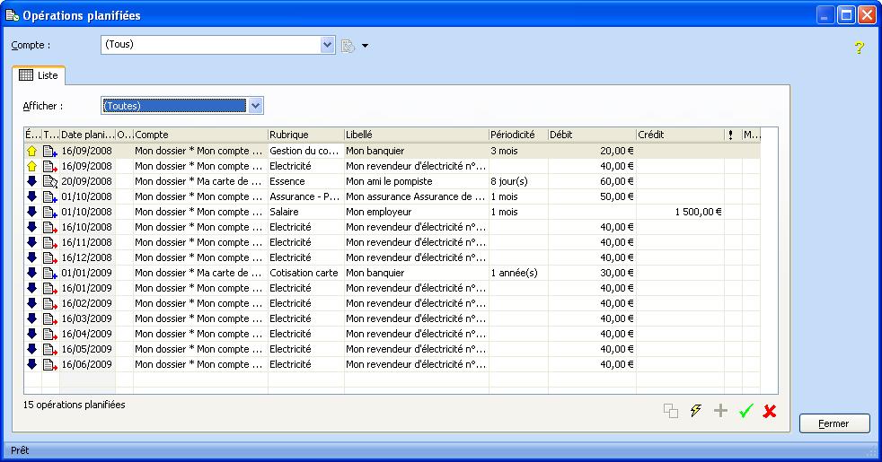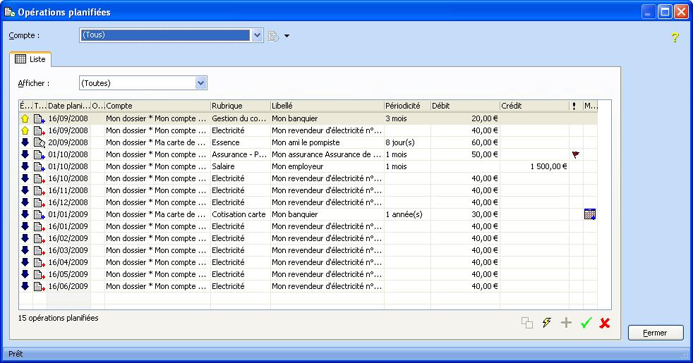 Cette fenêtre propose la liste des opérations planifiées
