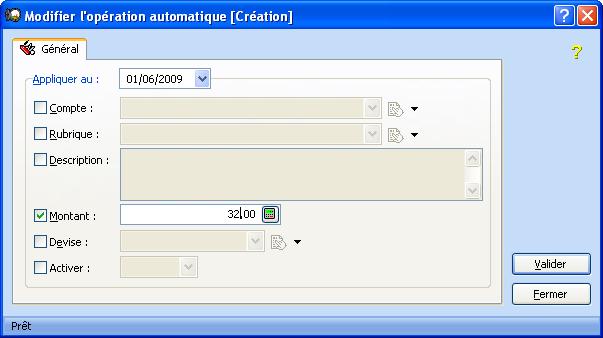 de la convertir en opération (en fixant le tiers, le montant