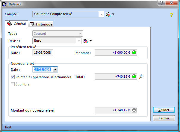 Notez que durant le pointage, vous pouvez rajouter des opérations, en modifier, en supprimer, etc. Lorsque vous avez terminé votre pointage, cliquez sur le bouton relevé (celui pointé par le ballon sur la capture juste au dessus). La fenêtre ci-dessous s'ouvre alors :