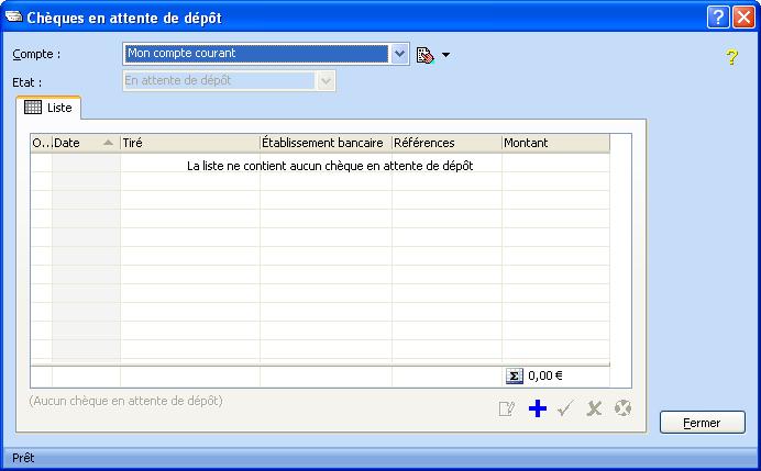 du compte. Les chèques en attente de dépôt apparaissent sur la branche "Opérations diverses" :